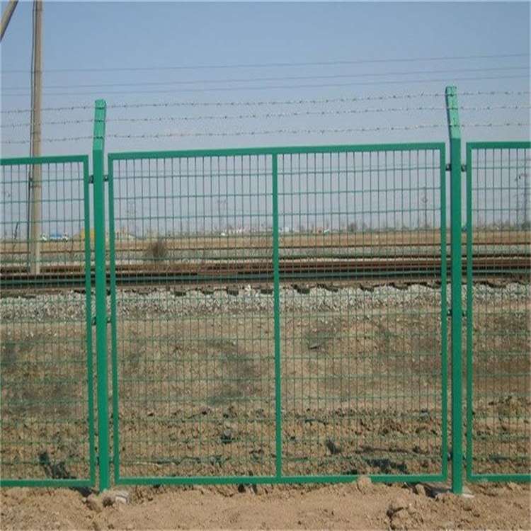 貨運鐵路隔離柵欄的外型規(guī)格分別是2760mm*1790mm2760*1700mm,由φ4.0毫米鐵絲焊接成網(wǎng)眼大小75*150mm的鋼絲網(wǎng)片,邊框由30mm*50mm*2.0mm鋼管制造外框,將網(wǎng)片和外框?qū)嵭薪M焊,防腐處理為整體熱鍍鋅浸塑。產(chǎn)品組建十分簡單網(wǎng)片的連接件相連接,連接螺栓采用防盜效果的墊圈,防止被盜。