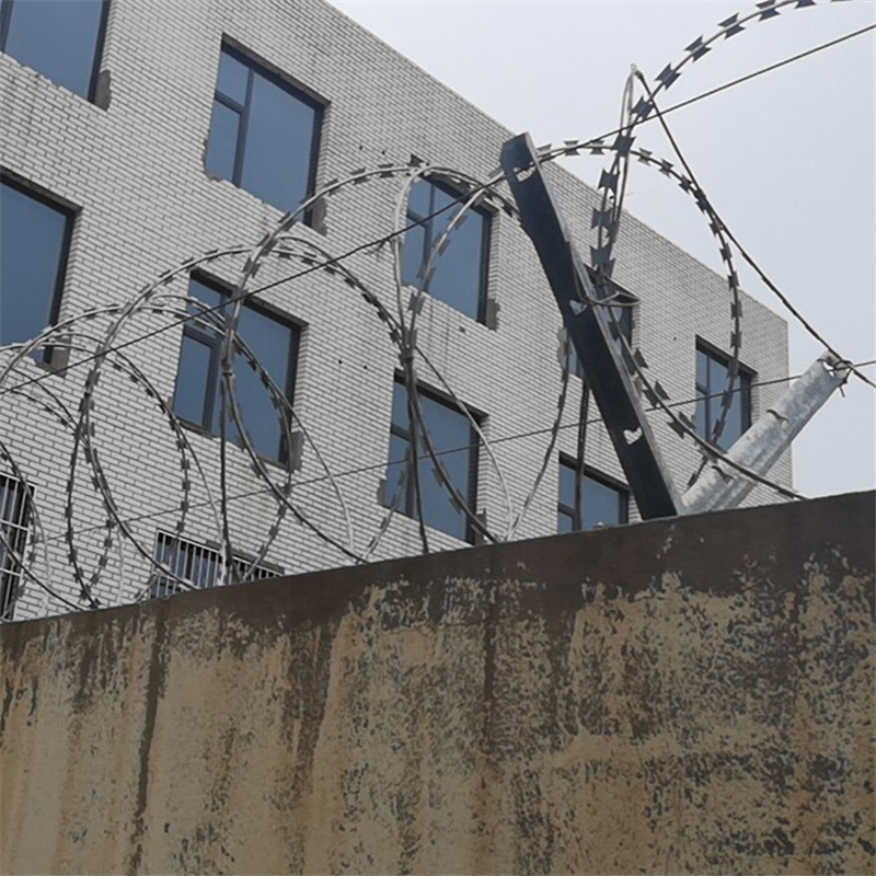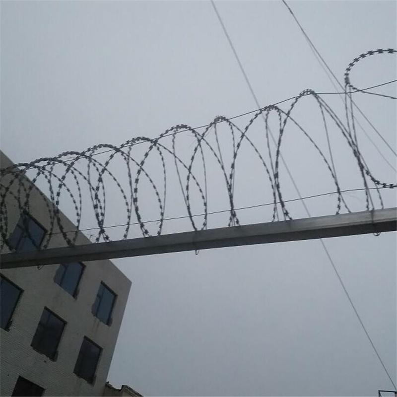 刀片刺網(wǎng)是沖剪鋼板成銳利的尖刀帶子,然后包裹中碳鋼絲(筋絲)之上。刀片刺絲是從海外引進(jìn)的絕對(duì)禁止通過(guò)的新型隔離產(chǎn)品。鋒利的刀片刺絲由雙根線扣卡子組裝后成蛇腹?fàn)睿屓丝吹讲缓?,能夠起到了恐嚇作用,?shí)際上人挨上刀片刺絲就被劃破,實(shí)際效果明顯。該產(chǎn)品施工便利快捷。深受軍隊(duì)和警察喜好。各國(guó)已將刀片刺網(wǎng)廣泛用于飛機(jī)場(chǎng)、軍事重地、邊境線、監(jiān)獄、政府機(jī)關(guān)、銀行,以及別墅的圍墻、高速公路、鐵路護(hù)欄等地。
