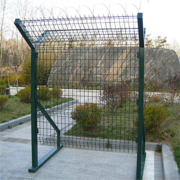 網(wǎng)片一般為4道折彎,折彎處加持加強(qiáng)筋,大大增強(qiáng)網(wǎng)片的堅(jiān)固性,立柱采用Q195鍍鋅焊接鋼管,規(guī)格:60X60mm,厚度不得少于1.5mm。