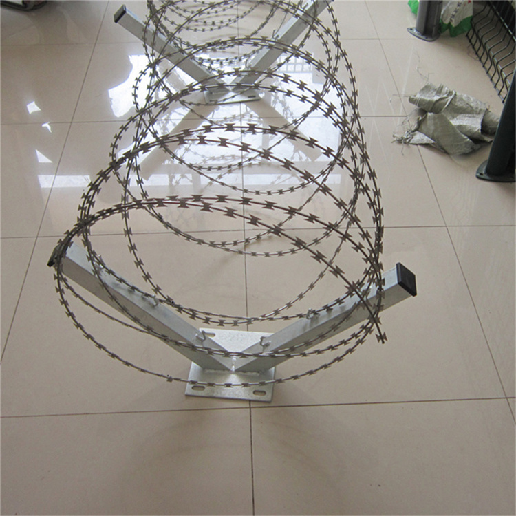 1 、安裝滾刀網(wǎng)在圍墻上,要有配備的支架來支撐刀片刺網(wǎng)易安裝,這樣安裝出來的效果美觀。首先是在圍墻上打眼用螺絲穩(wěn)固刀片刺網(wǎng)立柱 ,一般情況是每隔3米一個(gè)支撐柱子。