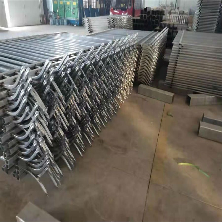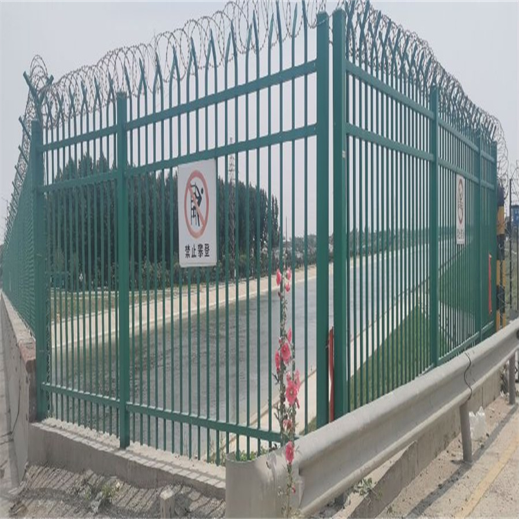 柵欄網(wǎng)片欄柵網(wǎng)片為帶尖彎頭鋅鋼型隔離網(wǎng),由橫桿、中間立柱和弧線槍尖組成。