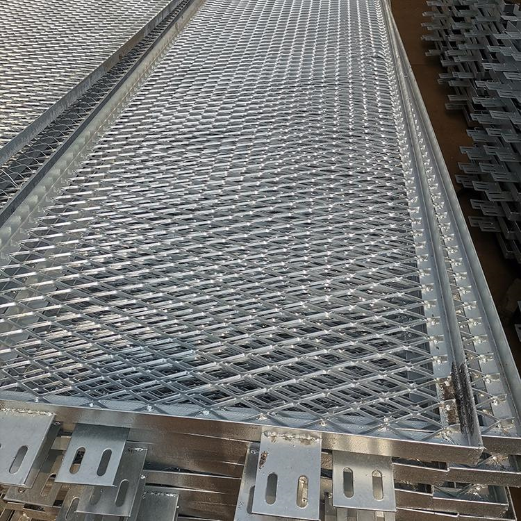 鋼板網(wǎng)圍欄結(jié)構(gòu):立柱+邊框立柱采用方形鋼管為多,網(wǎng)體邊框采用小號(hào)矩形方管為材料,立柱與邊框相對(duì)應(yīng)位置均煌連接扁鐵沖床耳片,立柱與網(wǎng)框通過連接目片上螺栓固定,立柱底部焊接底板,立柱底板誦過膨脹螺栓與地面固定。 立柱形式圓形與方形均可采用,網(wǎng)體網(wǎng)格長(zhǎng)方形居多絲經(jīng)相對(duì)較大。網(wǎng)體形式多樣,結(jié)構(gòu)形 式簡(jiǎn)潔,牢固與美觀兼?zhèn)?,既起到隔離防護(hù)功能也起到裝飾作用。鋼板網(wǎng)圍欄產(chǎn)品系列絲經(jīng):3.0mm-5.0mm孔徑:7x15,8x16,9x17尺寸:1.8mx3m,2mx3m。