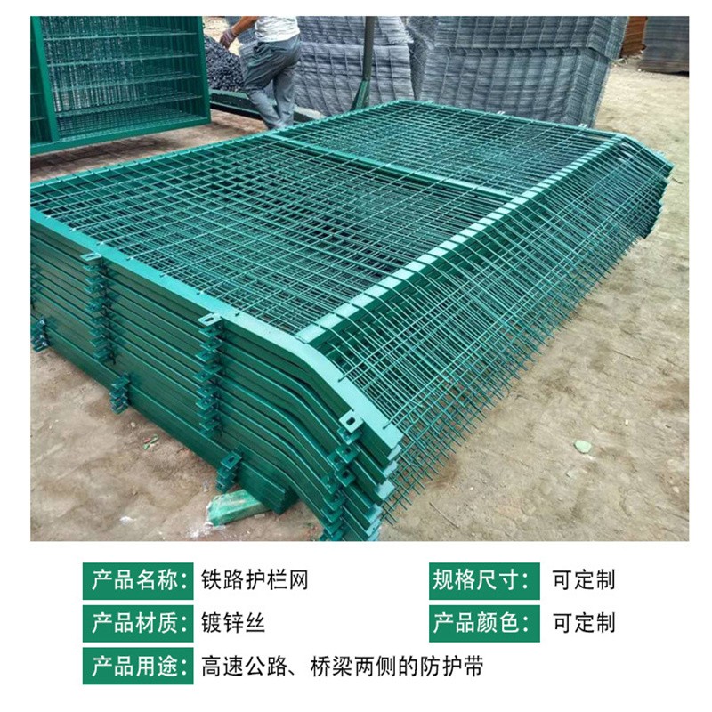 這兩種鐵路防護(hù)柵欄的除了頂部設(shè)計(jì)的不同,其他方面原材料、規(guī)格(絲徑、孔徑、框管、表面處理)都一樣,一般8001鐵路柵欄用在橋上比較多,8002柵欄用在橋下比較多。