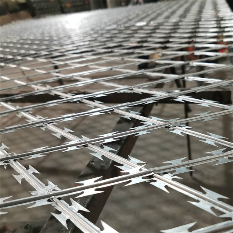 焊接刀片刺網(wǎng)是一種近年發(fā)展起來(lái)的防護(hù)、阻隔能力較強(qiáng)的新型防護(hù)網(wǎng)產(chǎn)品。鋒利的刀型既美觀又讓人不寒而栗。起到了很好的阻嚇作用。一起該產(chǎn)品具有美觀、防阻作用好、施工便當(dāng)?shù)葍?yōu)點(diǎn)。