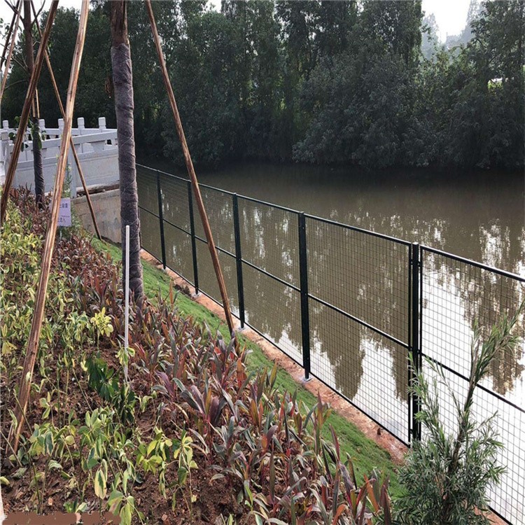 1、網(wǎng)片:采用熱鍍鋅+pvc包塑鐵絲角鋼框架焊接網(wǎng)片,尺寸為1.8m*1.98m(高*寬)。網(wǎng)孔尺寸為75mm*150mm,絲徑為5.0mm,熱鍍鋅+包塑后為6mm;邊框采用角鋼邊框,規(guī)格為63*40*5,網(wǎng)片底部高出地面0.1m。