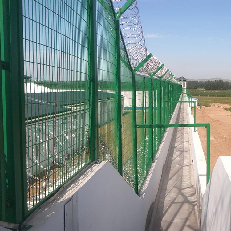 監(jiān)獄警戒圍墻隔離網(wǎng)一般都采用邊框型,這樣的生產(chǎn)形勢也是為了增加網(wǎng)片的牢固度,網(wǎng)孔可以焊接成正方形、長方形,也可以焊接成菱形,也可以直接采用刀片刺繩焊接網(wǎng)或鋼板網(wǎng)材料的網(wǎng)片,然后在網(wǎng)片的基礎上四周焊接邊框,最后進行pvc浸塑或噴塑處理。