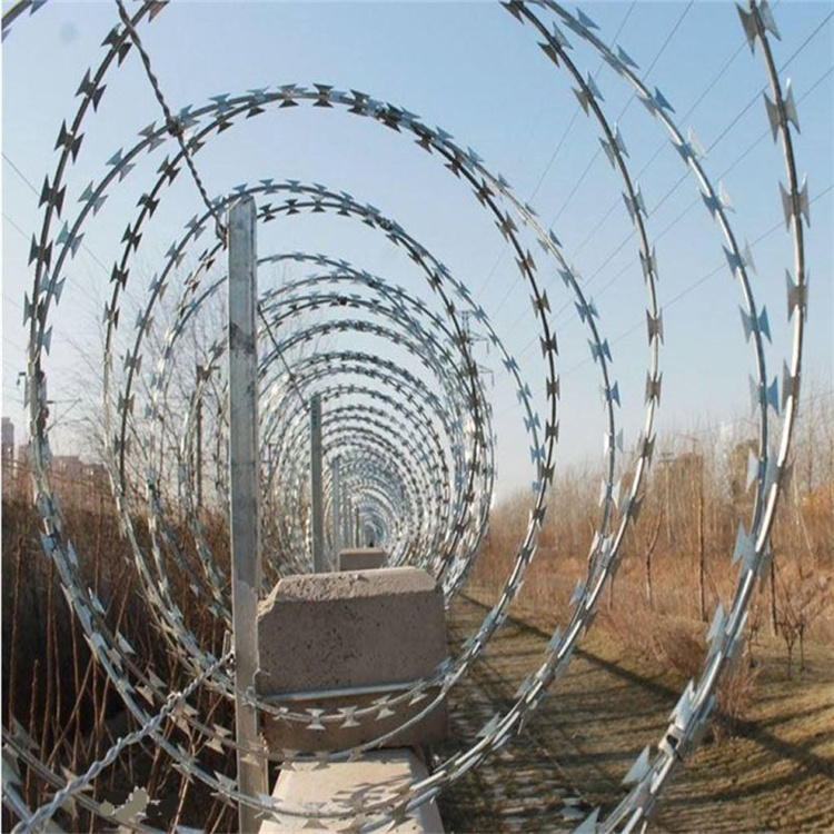 刀刺隔離網(wǎng)的安裝方法:  1. 將拉線展開拉直固定在立柱頂部的 V 形支架上,由于需要安裝的刀片刺絲有許多鋒利...刺網(wǎng)的一邊,然后向相反方向拉開就行,注意孔的間距不要太大,不然影響美觀效果。收的時候只要慢慢的送回去就行,操作簡單,施工便利。 [ 查看詳情 ]