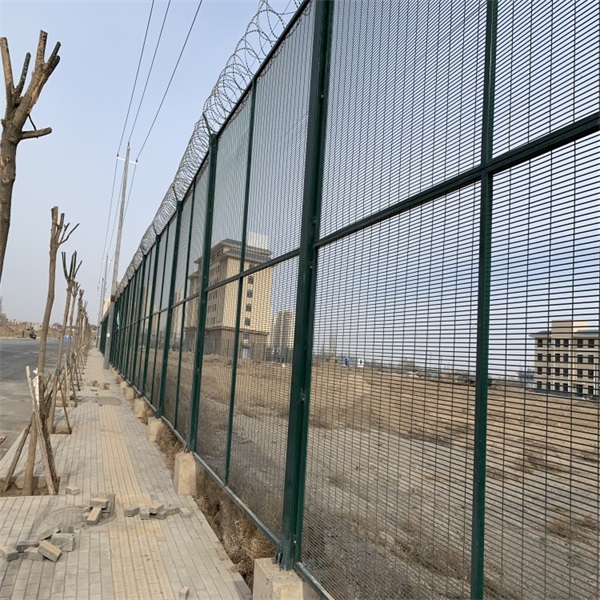 二、密紋隔離網,顧名思義網格非常密集,手指無法穿透網格,沒有借力點,自然就無法攀爬,此種隔離網還有一個優(yōu)點就是,因為網格密集,不只手指無法穿透,就連剪絲鉗也不能剪斷,可以有效防止隔離網被破壞;