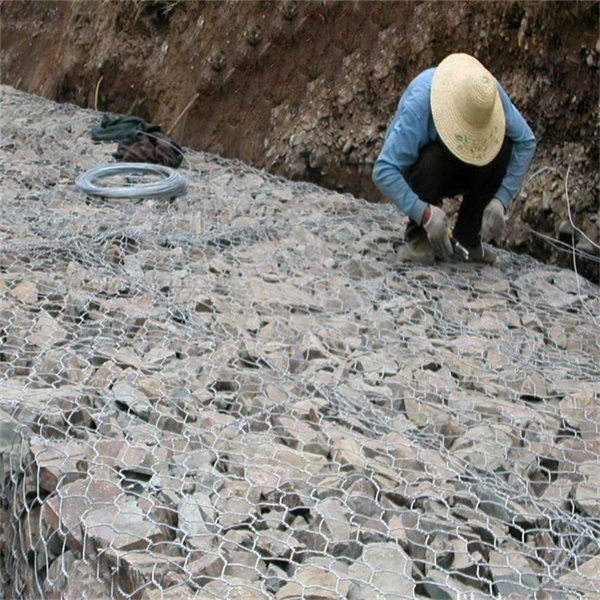 3.安裝好后,將雷諾護墊放在指定位置,再將各個網(wǎng)墊連接起來。為了保持整體架構(gòu)便于連接,可以空箱連接后在裝石料。連接時我們提供綁絲或者環(huán)形緊固絲。護坡時需用與坡體垂直寬的雷諾護墊。除了用于河渠緩坡外,雷諾護墊還可以用于陡坡中,在上層底板上每2m或按工程需求楔入硬木楔。安裝雷諾護墊需小心安置組裝。