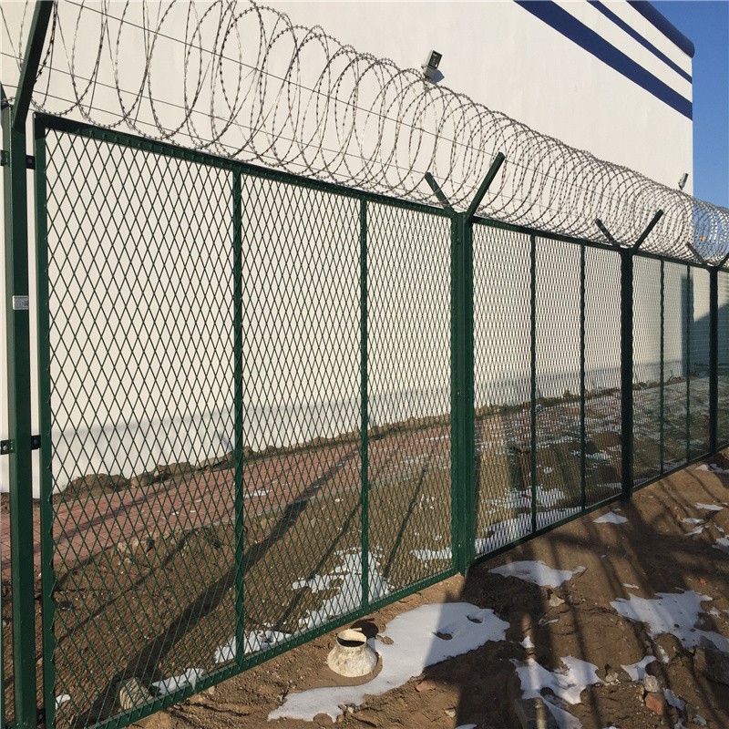 監(jiān)獄隔離網(wǎng)通常采用鋼絲直徑為5mm、6mm、6.5mm,網(wǎng)孔采用50mm*100mm、50mm*50mm、50mm*200mm、50mm*150mm.