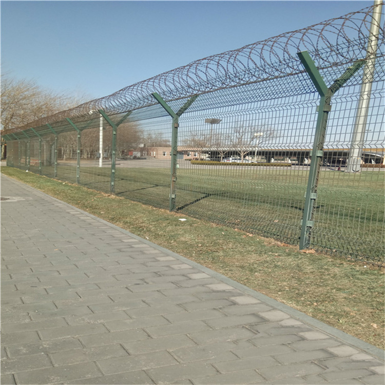 由于有金屬網(wǎng)這個(gè)特色經(jīng)濟(jì)本地的發(fā)展速度還是很快的。金屬網(wǎng)的種類很多,其中就包括機(jī)場(chǎng)圍界網(wǎng),機(jī)場(chǎng)圍界網(wǎng)也可以叫機(jī)場(chǎng)護(hù)欄網(wǎng),是一種由鋼絲焊接后再鍍鋅再噴塑或者浸塑的高端護(hù)欄網(wǎng)產(chǎn)品。通常采用Y字型立柱,這種造型是為了方便在頂部架設(shè)刀片刺網(wǎng),這種組合模式可以大大提高機(jī)場(chǎng)圍界網(wǎng)的安全防護(hù)性能。