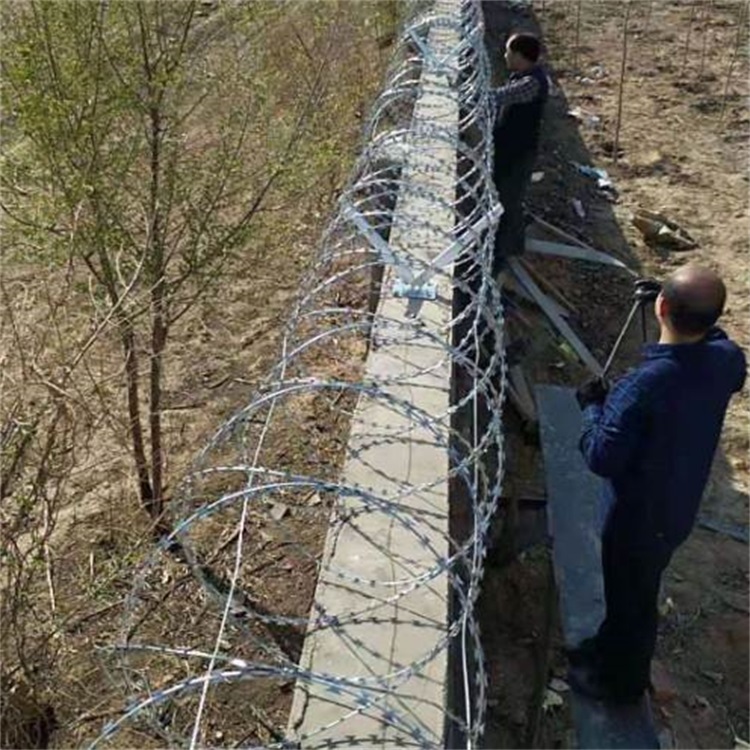 刀刺網(wǎng)由熱鍍鋅鋼板或不銹鋼薄板沖壓出尖銳的刀片狀,高張力鍍鋅鋼絲或者不銹鋼絲做芯線組合而成的阻絕器材。由于刺網(wǎng)造形獨(dú)特不易觸摸,因而能達(dá)到極好的防護(hù)隔離效果。產(chǎn)品的主要材質(zhì)有鍍鋅板和不銹鋼板。 監(jiān)獄鋼網(wǎng)墻主要用于國(guó)家重要機(jī)關(guān)、場(chǎng)所、企事業(yè)單位和飛機(jī)場(chǎng)、監(jiān)獄、看守所等重要目標(biāo)周邊防護(hù)。