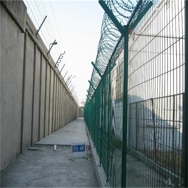 6.監(jiān)獄金屬隔離網(wǎng)每間隔一定距離(通常為75米)應(yīng)將網(wǎng)墻立柱做一次雙柱分段隔離,雙柱間隙不大于10mm。網(wǎng)墻拐角和分段處的兩根立柱應(yīng)預(yù)制連體底座,連體底座的體積應(yīng)為單體底座的兩倍。