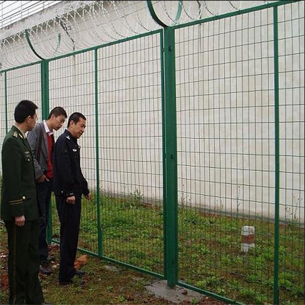監(jiān)獄和看守所常用一種帶螺旋刀刺網(wǎng)的隔離網(wǎng)作為防御圍網(wǎng),防止犯人越獄逃跑的利器,監(jiān)獄隔離網(wǎng)和看守所隔離網(wǎng)的規(guī)格大體相同,只是一般來說,監(jiān)獄防護(hù)網(wǎng)的質(zhì)量要求要略高于看守所隔離網(wǎng)和拘留所隔離網(wǎng),監(jiān)獄隔離網(wǎng)和戒毒所隔離網(wǎng)、軍事禁區(qū)隔離網(wǎng)以及保護(hù)地隔離網(wǎng)的要求是一致的,常用的是低碳鋼絲材質(zhì)和浸塑防腐處理,質(zhì)量好點(diǎn)的是用熱鍍鋅材質(zhì)和噴塑防腐處理。