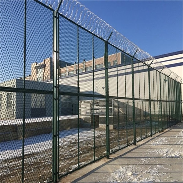 2、浸塑制作流程,首先將工件進行去除氧化層→水洗→將工件加熱至380攝氏度高溫→將加熱好的工件放入固體粉末槽,粉末經(jīng)過高溫粘附在監(jiān)獄隔離網(wǎng)的表面→最后進入烘烤固化室→成品。優(yōu)點:色彩鮮艷,不易老化,顏色多種選擇,防腐壽命10年以上,缺點:時間久了以后,破損地方容易生銹,維護成本較高。