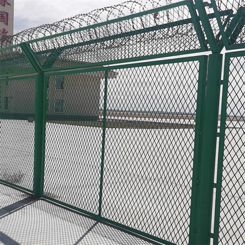 看守所鋼網(wǎng)墻的高度一般有1.8--2.5米,這只是網(wǎng)片的高度,立柱之間的跨度一般為2.5--3米,網(wǎng)孔為50X100mm,絲徑一般為5mm--6mm,立柱一般為60圓柱,60X60方柱,80X80方柱等,壁厚不得少于1.5mm,這些參數(shù)都是浸塑以前的厚度,立柱形狀呈Y字型,鋪設(shè)4道鍍鋅鋼絲,剛才說(shuō)到,頂部增設(shè)蛇腹型刀刺網(wǎng),這4道鍍鋅鐵絲就是方便安裝蛇腹型刀刺網(wǎng)的。刀刺網(wǎng)的卷徑一般為50cm--80cm,型號(hào)為BTO-22,材質(zhì)分為普鋅,高鋅,不銹鋼,不銹鐵這4種。