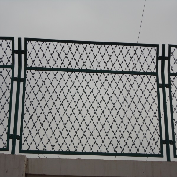 圍墻刀刺隔離網(wǎng)的焊接制作方法,刀刺隔離網(wǎng)建設(shè)于監(jiān)獄、看守所的內(nèi)外墻地面及高墻之上,網(wǎng)墻內(nèi)側(cè)或頂部加裝蛇腹形刀刺網(wǎng),形成一道高不可攀、難以逾越的隔離障礙。配合高壓打擊電網(wǎng)、各種監(jiān)控報(bào)警設(shè)備確保監(jiān)獄安全萬(wàn)無(wú)一失。