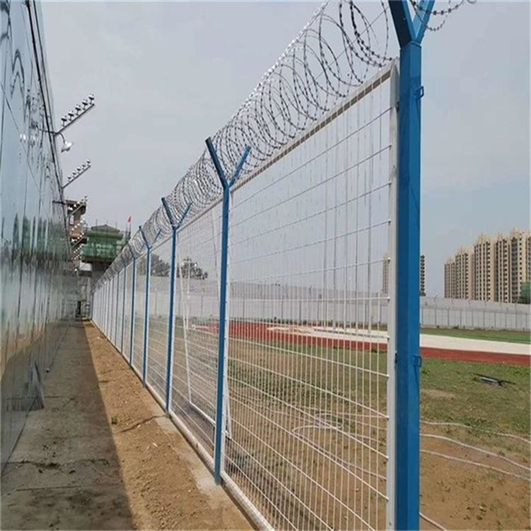 監(jiān)獄看守所隔離網(wǎng)都是用在圍墻武警巡邏道上或者內(nèi)外墻5m-10m的位置。這些隔離網(wǎng)樣式頂部加裝蛇腹形刀刺網(wǎng)。巡邏道和監(jiān)區(qū)安裝蛇腹形倒刺網(wǎng)設(shè)計都是一樣的。在隔離網(wǎng)一層防攀爬效果的基礎(chǔ)上面,再多一道‘安全墻’,這種刀刺網(wǎng)都是利用鋼板沖出刀片來,用專制卡扣固定在一起。兩個圈用卡扣固定,這樣拉伸開才是連貫一圈一圈固定在一起。