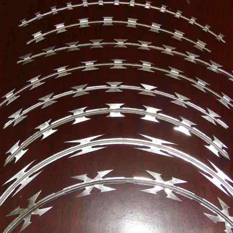 刀刺網又叫刀片刺網,刀刺隔離網,它是一種阻絕措施,由不銹鋼板或者鍍鋅鋼板經過沖壓刀型和芯線制成,芯線一般是由具有很大張力的鋼絲做成的,原材料的特性造就了刀刺網具有防破壞、耐腐蝕等特點。