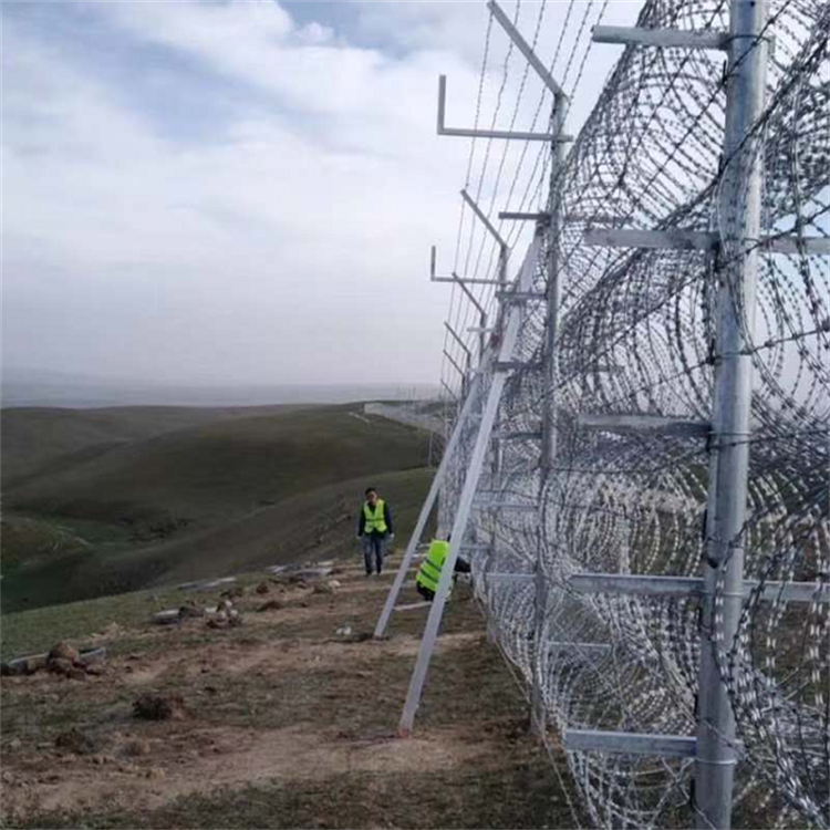 不銹鋼304蛇腹形刀刺網(wǎng):技術規(guī)格刺片長22mm±1mm,寬15mm±1mm,板厚0.5mm±0.05mm,內絲經(jīng)2.5mm±0.1mm,刀間距36mm±1mm;技術要求:每米10個單圈,刺圈直徑500mm,內外都采用SUS304不銹鋼+二次鍍膜修復劃痕處理(雙層防腐)。用4根直徑2.5mm的不銹鋼鋼絲固定,拉絲和刀刺用直徑1mm的不銹鋼絲或專用卡子捆扎,材質SUS304;鋼板和內絲材質,標準:SUS304;含安裝輔件。