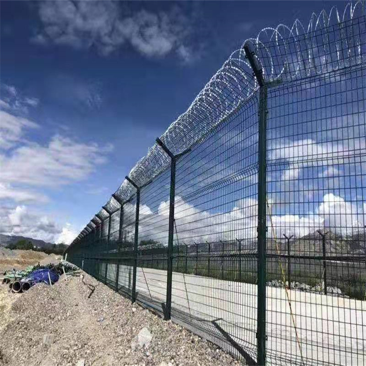 機場鋼筋網圍界浸塑:浸塑是將金屬構件預熱后浸入流化狀態(tài)的塑料粉末中,以金屬構件自身的熱量使粉末均勻沾附于 構件表面,再進一步加熱使粉末充分熔融流平,冷卻后金屬表面即形成平滑的塑層.塑層厚度0.8-1.2mm.浸塑防腐比較適用于潮濕,多雨的氣候.質量好的浸塑產品使用壽命可達10年.