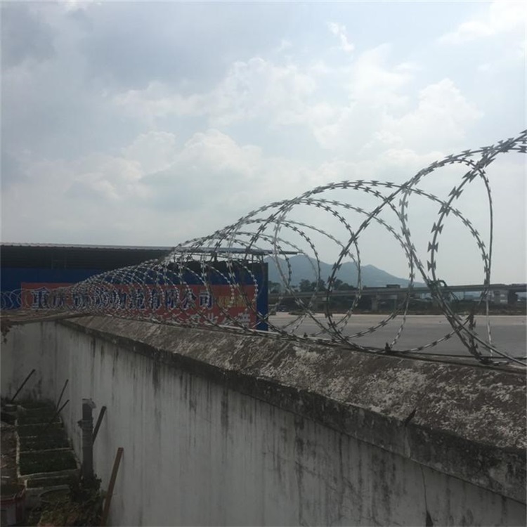 圍墻防攀爬倒刺網(wǎng)。還有的墻呈尖型,就要從圍墻側(cè)面固定,直接在圍墻頂部安裝的Y叉底部加長,墻側(cè)面固定的;也可以將刀刺網(wǎng)用扁鐵固定在墻側(cè),用螺絲固定扁鐵條就行;但是加高高度是有限的,因?yàn)榉琅逝赖勾叹W(wǎng)的直徑一般是50cm、60cm、80cm、100cm?,F(xiàn)在的高度已經(jīng)不能滿足個(gè)別場合的需要了。結(jié)合客戶需要我廠的圍墻加高防攀爬倒刺網(wǎng)可以和金屬鋼網(wǎng)相結(jié)合來用。
