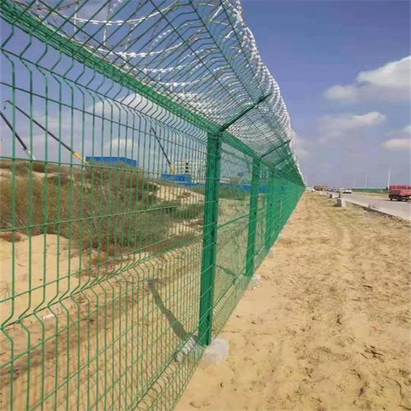 機(jī)場護(hù)欄網(wǎng)是一種由鋼絲焊接后再鍍鋅再噴塑或者浸塑的高端護(hù)欄網(wǎng)產(chǎn)品。通常采用Y字型立柱,這種造型是為了方便在頂部架設(shè)刀片刺網(wǎng),這種組合模式可以大大提高機(jī)場護(hù)欄網(wǎng)的安全防護(hù)性能。
