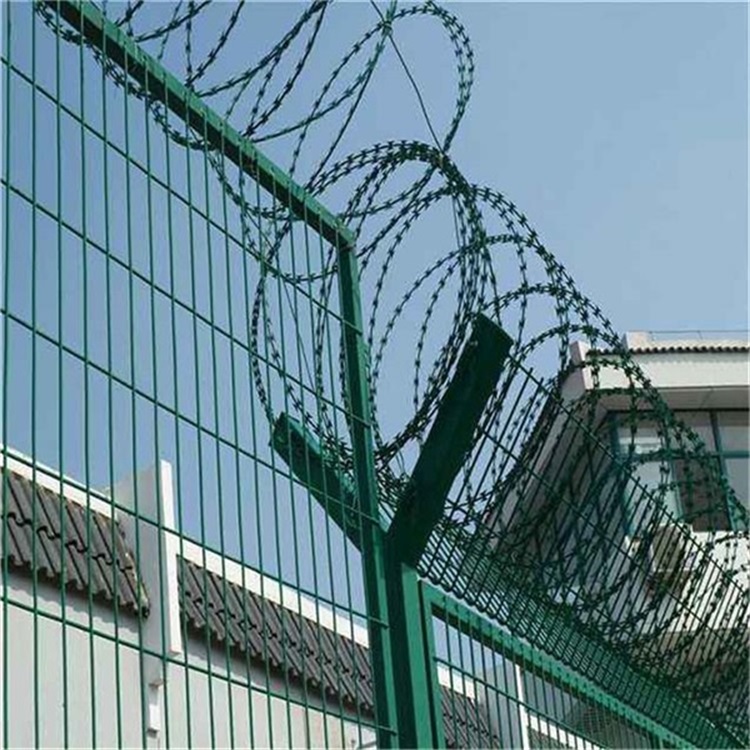 看守所刀刺鋼網(wǎng)墻的規(guī)格要求:看守所立裝一道刀刺鋼網(wǎng)墻(落地式)設(shè)計(jì)標(biāo)準(zhǔn):(鋼網(wǎng)墻構(gòu)件技術(shù)符合《隔離柵技術(shù)條件》JT/T347-1998標(biāo)準(zhǔn),總體效果網(wǎng)片平整,網(wǎng)孔均勻,焊透率100%,表面無(wú)針孔,開(kāi)裂、漏塑不良現(xiàn)象。)