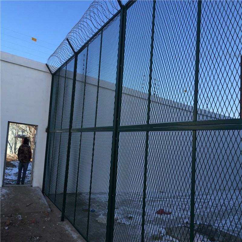 監(jiān)獄隔離網(wǎng)通常采用鋼絲直徑為5mm、6mm、6.5mm,網(wǎng)孔采用50mm*100mm、50mm*50mm、50mm*200mm、50mm*150mm.