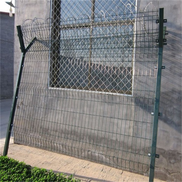 監(jiān)獄鋼網(wǎng)墻的立柱規(guī)格要求甚高,因為立柱關乎著整個網(wǎng)墻是否牢固的根本,所以在選購立柱時一定不能馬虎,立柱的規(guī)格為:60X60mm、80X80mm、100X100mm鍍鋅方管,厚度不得少于2.5mm,頂部V字高度45-60cm,也稱為Y型柱,鋪設4道刺鐵絲用來承托蛇腹型刀刺網(wǎng)。鋼網(wǎng)墻施工一般采用預埋式,因為這樣能使鋼網(wǎng)墻的牢固性發(fā)揮到更佳,更加堅不可摧,立柱預埋深度不得少于50cm,全程采用混凝土澆筑,混凝土也要采用高強度的,不得采用劣質混凝土以次充好,要不然鋼網(wǎng)墻就會變成紙糊的老虎,捅破只是時間問題。