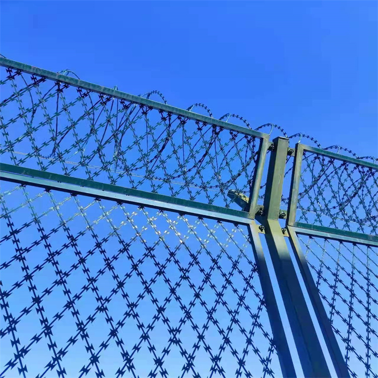 監(jiān)獄鋼網(wǎng)墻由焊接鋼網(wǎng)加蛇腹形刀刺網(wǎng)組合而成。產(chǎn)品具有結(jié)構(gòu)新穎、堅(jiān)固緊密、網(wǎng)面平整、網(wǎng)孔均勻、刀鋒銳利、防攀爬、抗 腐蝕性強(qiáng)等特點(diǎn)。建設(shè)于監(jiān)獄的內(nèi)外墻地面及高墻之上,網(wǎng)墻內(nèi)側(cè)或頂部加裝蛇腹形刀刺網(wǎng),形成一道高不可攀、難以逾越的隔離障礙。配合高壓打擊電網(wǎng)、各種監(jiān)控報(bào)警設(shè)備確保監(jiān)獄安全萬無一失。
