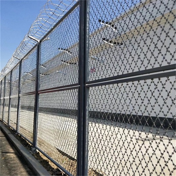 監(jiān)獄鋼網(wǎng)墻V型托架刀刺網(wǎng)拉絲采用貫穿式連接,每隔20米固定拉絲,立柱做調(diào)直處理,每20米校正,每100米偏差角度不大于5°,安裝整體無(wú)歪斜,隔離網(wǎng)整體呈直線(除地形需要做出適宜角度外)。