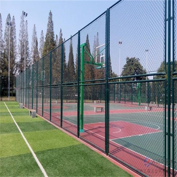 3、運動場勾花圍網(wǎng)采用包塑的鐵絲網(wǎng),網(wǎng)眼面積應(yīng)為50毫米×50毫米(或45×45毫米),圍網(wǎng)的固定件不能有銳利的邊沿。