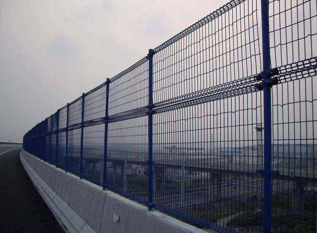 橋梁防落物網(wǎng)雙圈樣式的,雙圈護(hù)欄網(wǎng)是用冷拔低碳鋼絲焊接成網(wǎng)筒狀卷邊與網(wǎng)面一體,采用鍍鋅進(jìn)行防腐處理,具有很強(qiáng)的耐腐蝕性,然后進(jìn)行噴、浸塑,各種顏色的噴、浸塑;后連接附件與鋼管支柱固定。