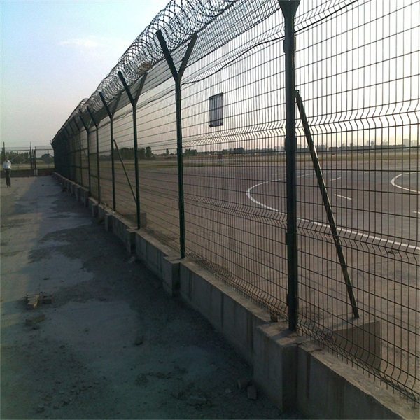 Y型機場圍界網(wǎng)頂部裝有刀片刺絲和刀片刺繩,安全保護功能將得到很好的加強。其產(chǎn)品外形美觀,顏色多樣,不僅起到圍欄的作用,還起到美化的作用。